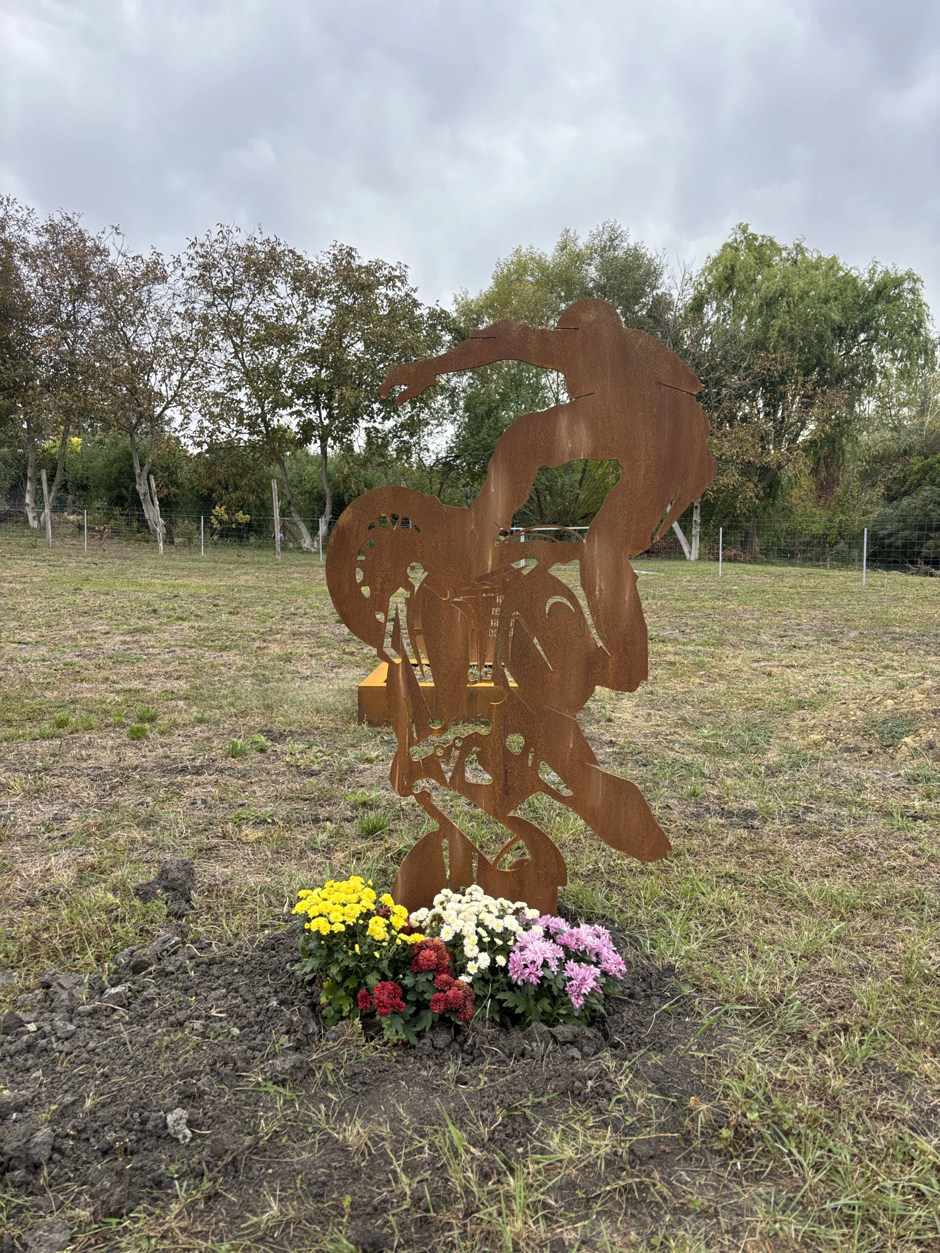Típus: Fejfa 6 mm Corten acél, háttérlemezzel; keret 1×2 m Corten acél; fejfa talppal.